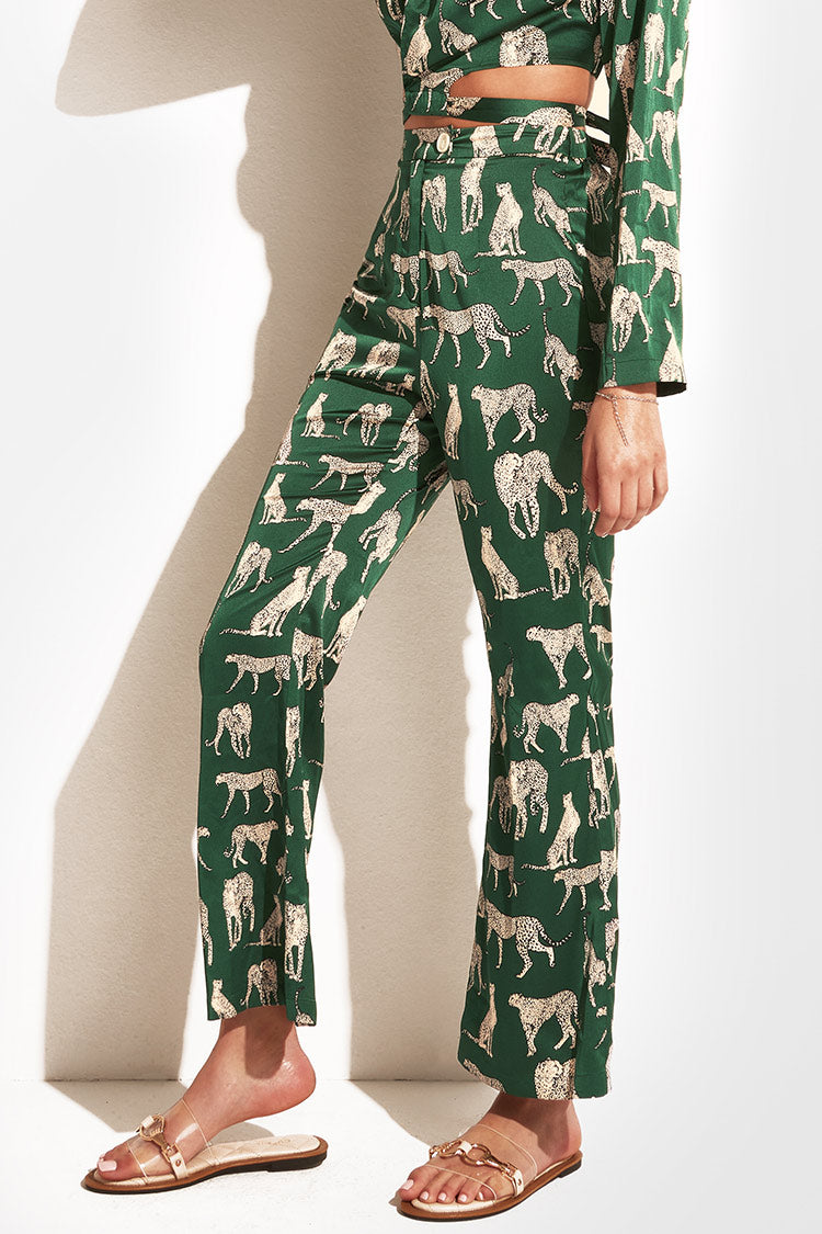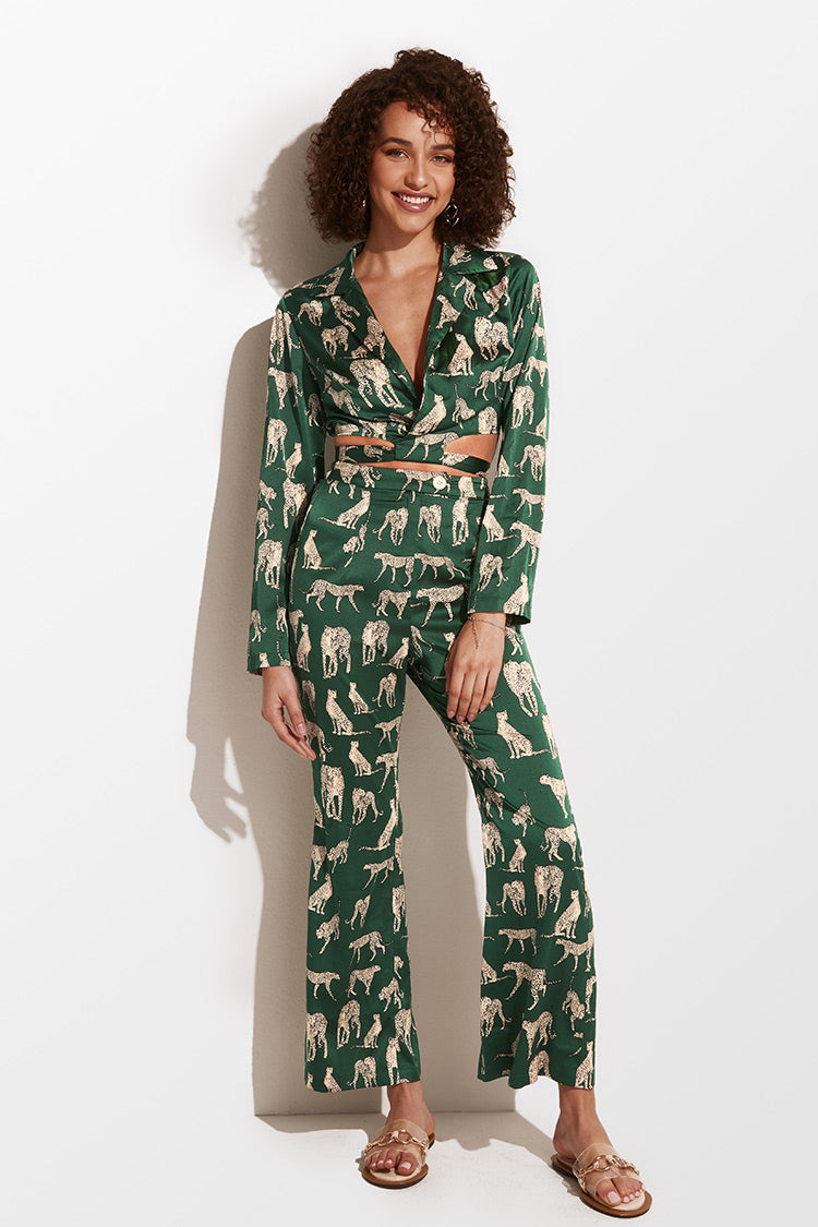 The Graciela Zip Front Animal Pattern Flared Pants have a very good texture. They use animal patterns and match with her coat. You will be the most special one in the crowd.