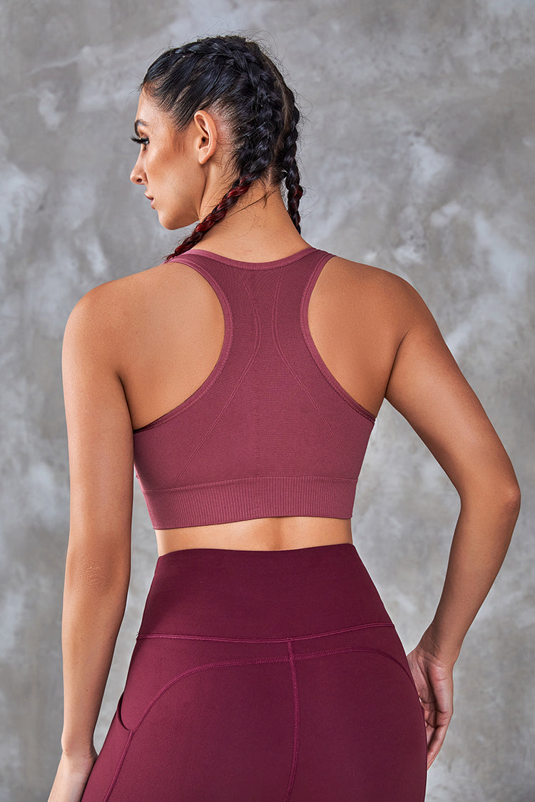 Sunshine Side U-neck Front Zipper Crop Sports Bra