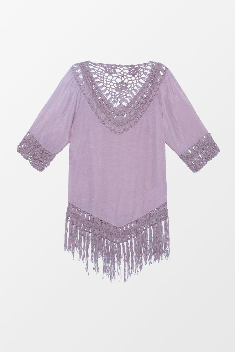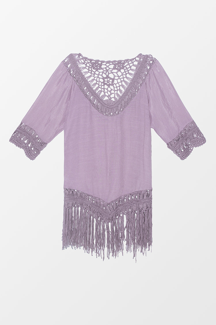Not your average crochet cover up! Wear the Sadie Crochet Fringe Half Sleeve Cover Up as a cover up or pair it with a comfy bralette for a cute festival look.