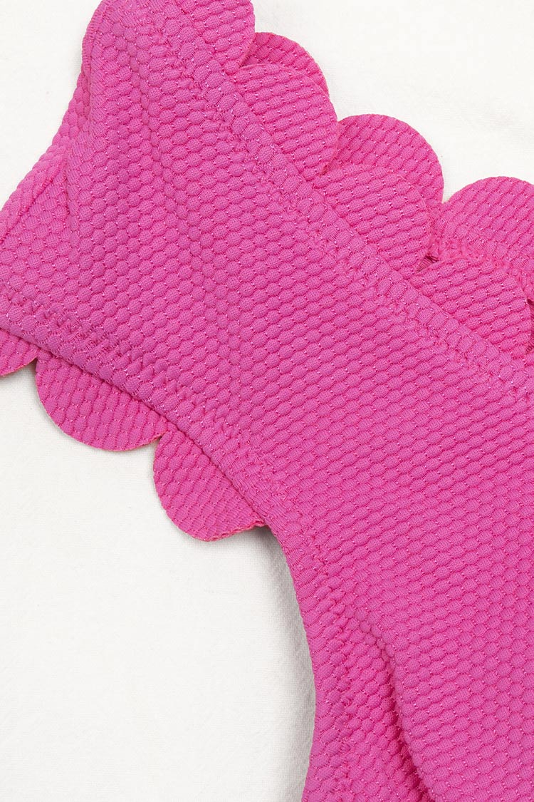 Slay on the beach in our Dejah Pink V-neck Scalloped One Piece Swimsuit! This one piece features a v-neckline and scalloped detailing with light support for your on-the-go adventures.