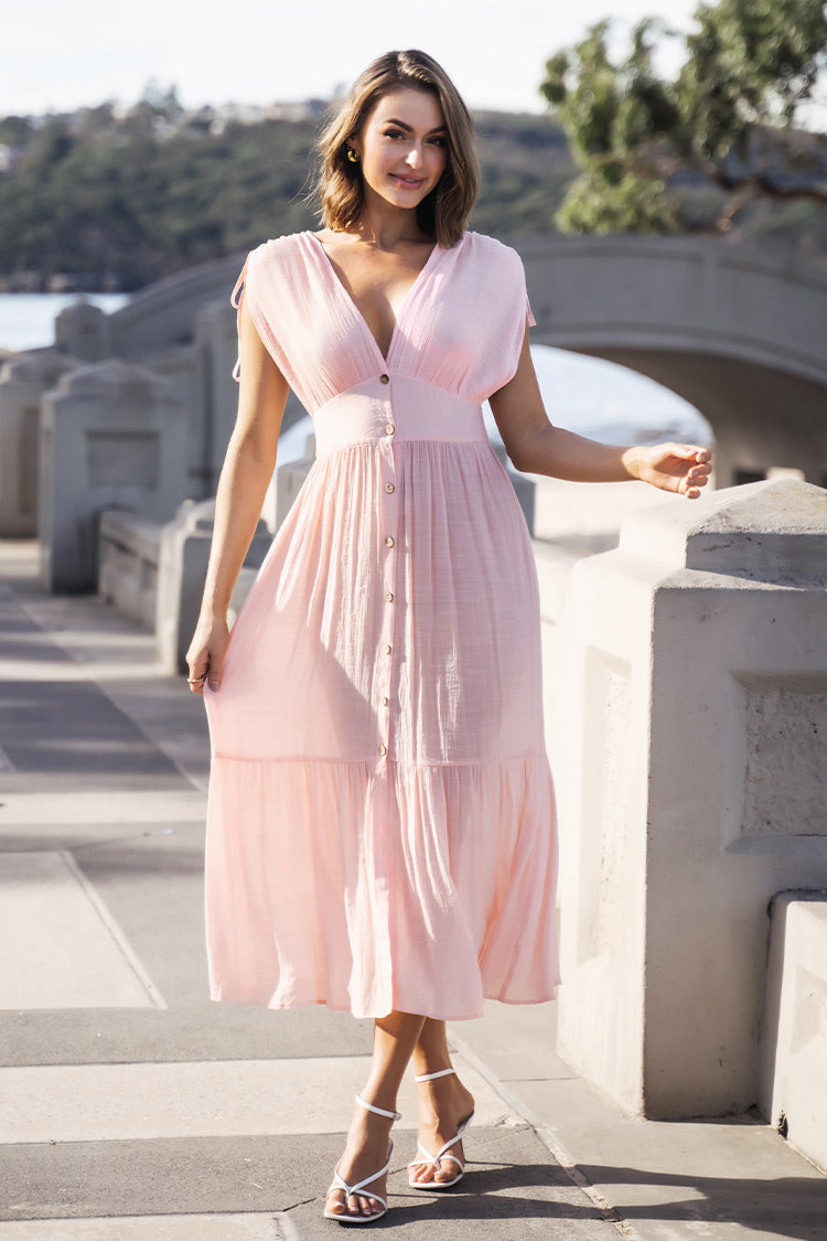 Our Esperanza V-neck Button Fitted Waisted Dress brings plenty of love and petals everywhere it goes. This dress features v-neck front and fitted waisted design.
