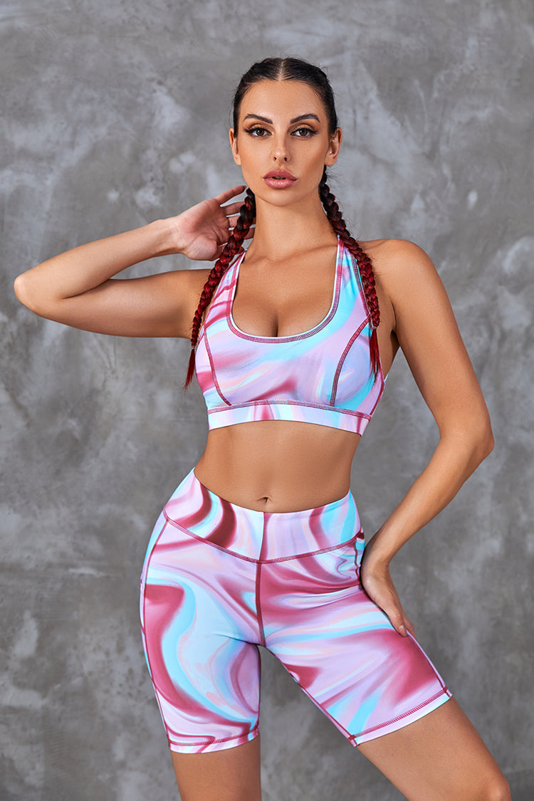 Work up a sweat in style, or spend the day lounging in the Amor Marble Criss Cross Sports Bra. Features with scoop neckline and crisscross on the back. Wide elastic band for better fit.