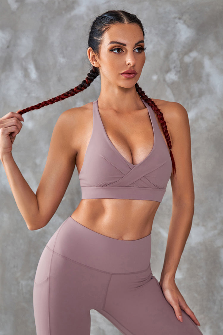 Get ready to stretch it out in style with the Gael Twist Tank Sports Bra! Lightweight and stretchy nylon, with a front twist and a back cut out, shapes this medium impact sports bras that falls from wide straps into a V-neckline and fitted design with a banded hem.