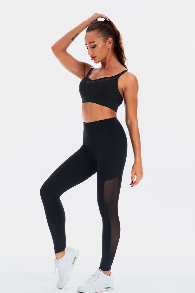Get ready to amp up your activewear wardrobe with Key West Black Leggings. Featuring a black material with a high waisted fit, Style with a sports bra and fresh kicks for a look that will take you that extra mile.Feel the difference in your workout with the Key West Contrast Mesh Activewear set. Meant for any occasion and any fitness routine, this top will keep you looking and feeling good.
