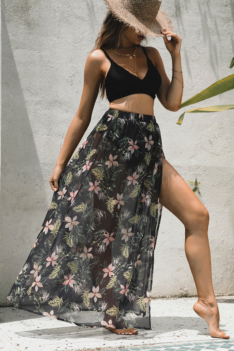 Add some luxe to your vacay look with thisMaxi Tropical Print Cover Up. Featuring floral and tropical print design. Team this with your favorite bikini for a look we're loving.