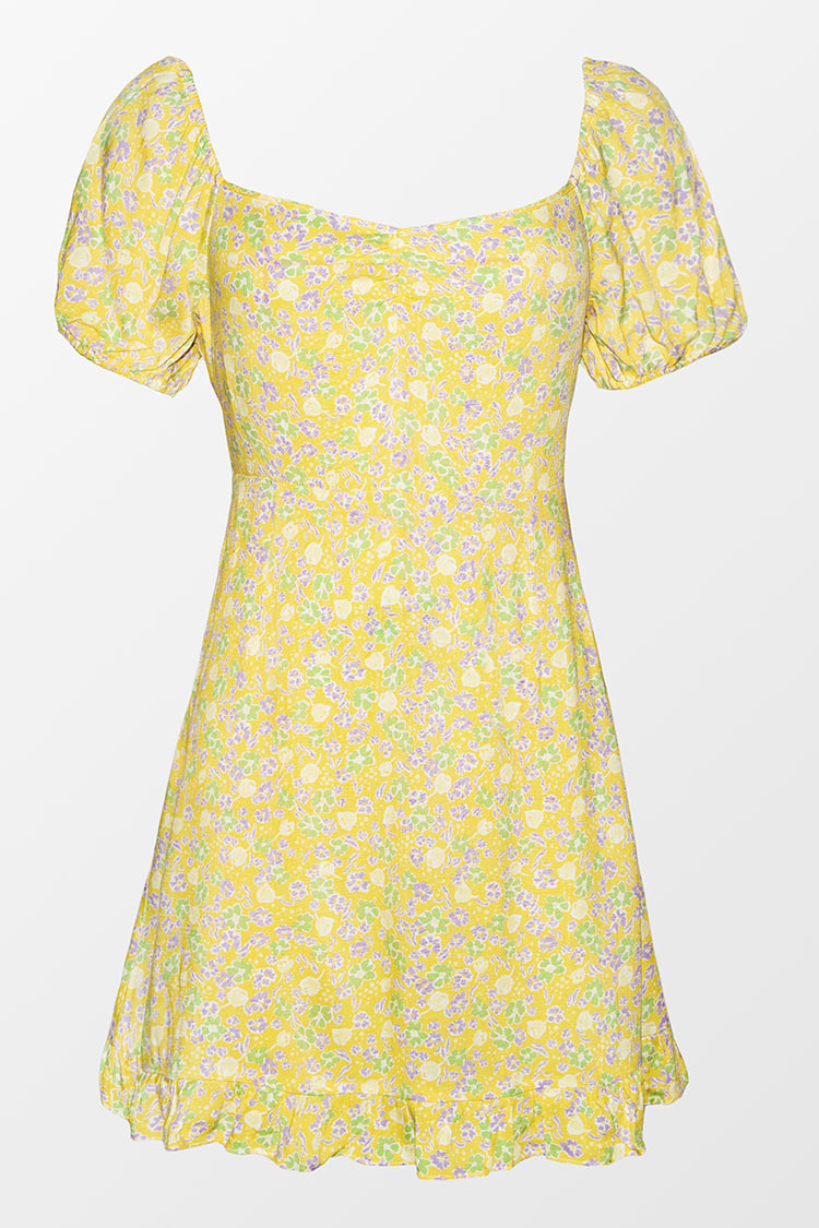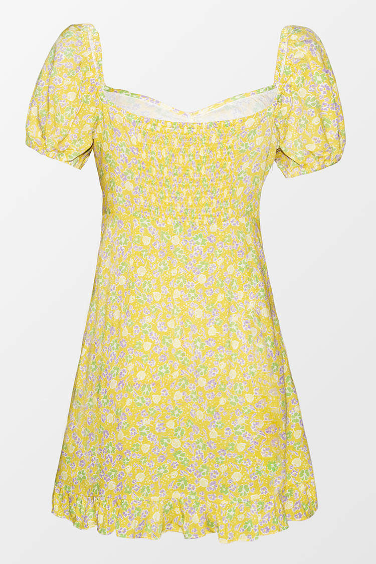 Create an unforgettable look with the Alianna Yellow Ditsy Puff Sleeve Dress. This dress is complete with a ditsy print, puff sleeves and front ruched detail.
