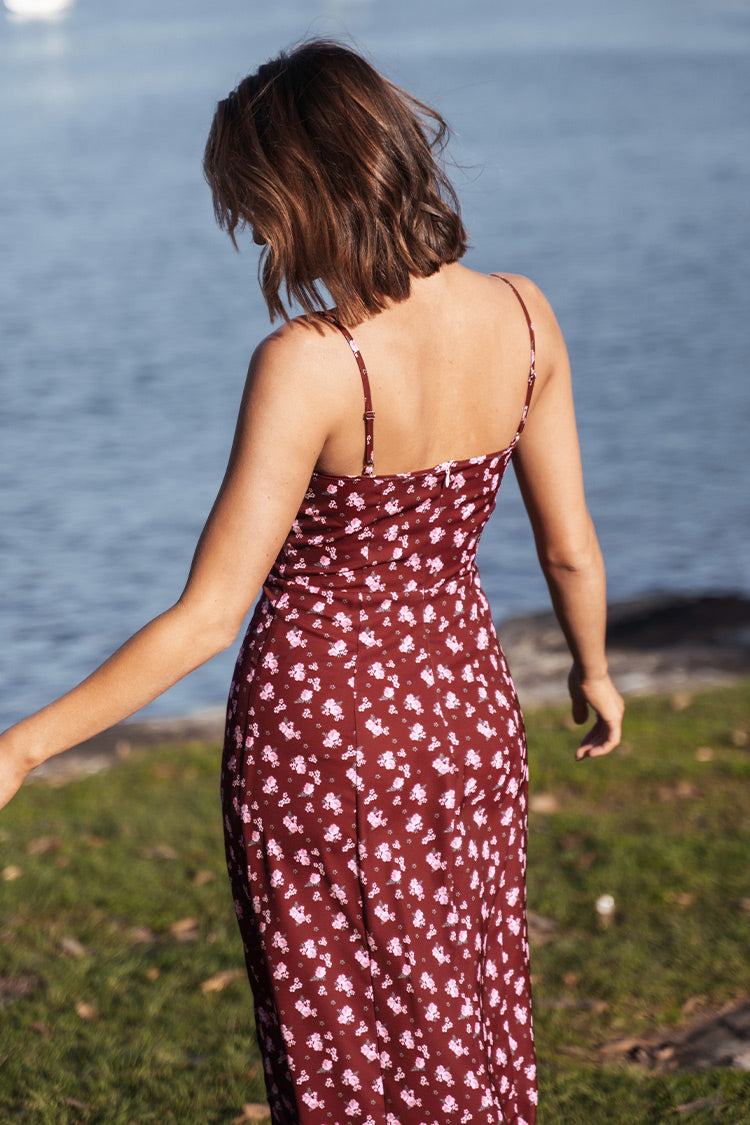 Alvina Thin Straps Drawstring Zipper A-Shape Dress adopts the design of thin shoulder straps, and its shoulder straps are adjustable, which can better adapt to your figure.