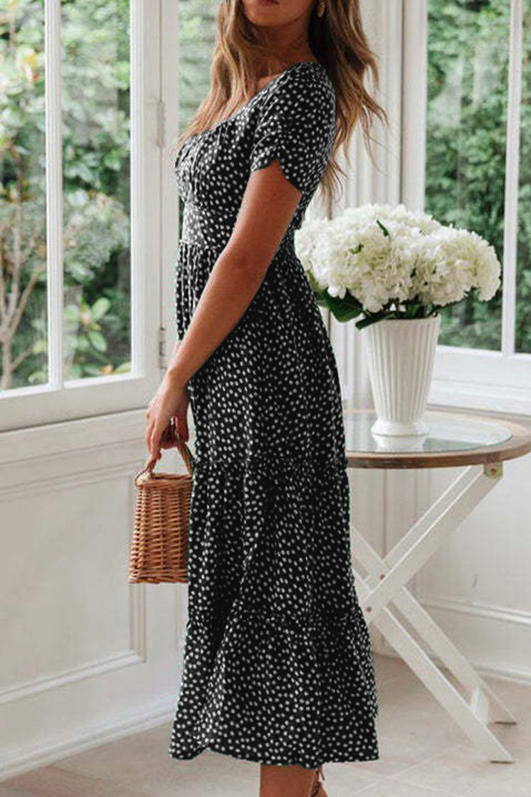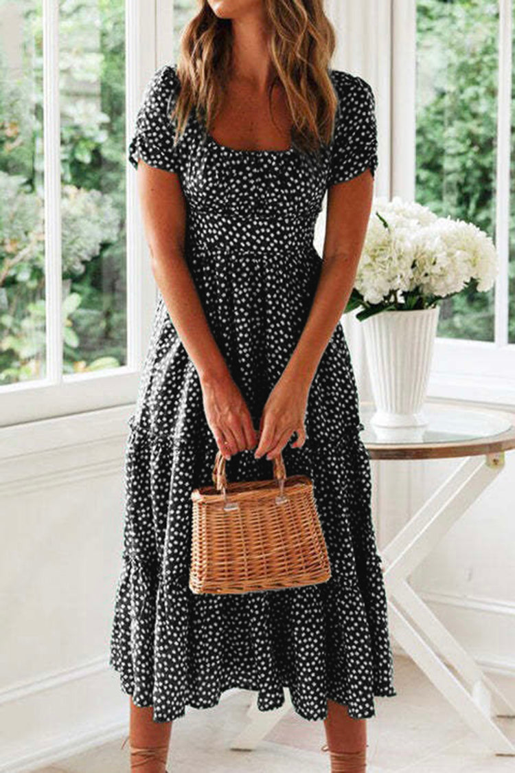 Add this season’s must-have shade to your look with this Frill Ruching Mid Length Dress. Featuring an eye-catching ditsy print, a square neckline, and a Bubble Sleeve. Style with heels and accessories for a chic look.