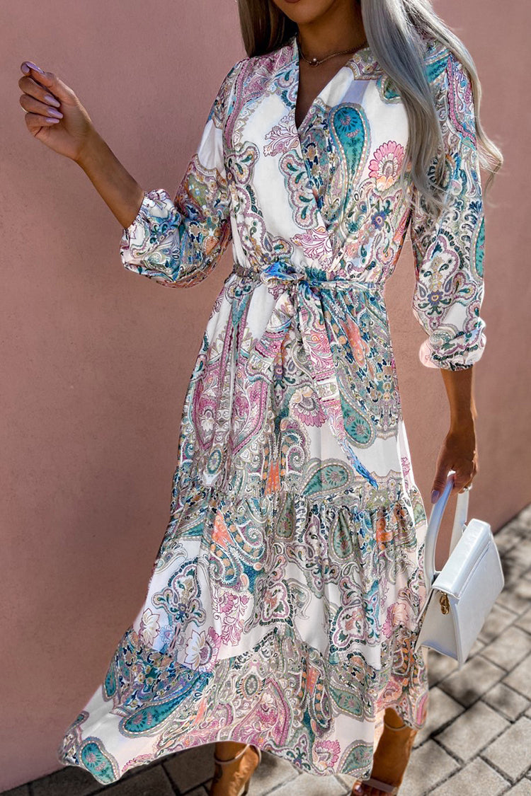 Featuring a paisley print and ruffle, this V-neck Elastic Waist Ruffle Dress is ticking all this seasons trend boxes. Style with heels and accessories for a look we're loving.