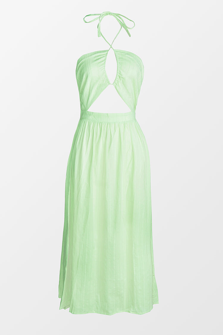 This Joselyn Cut out Drawstring A-Shape Dress uses a unique chest cutout, navel design, and drawstring design on the back. It is a unique and fashionable dress. You will definitely stand out when you wear it.