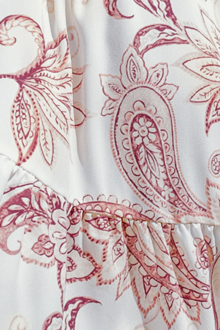 This Kameron Plunge Ruffle Fitted Waisted Tie A-Shape Dress with paisley pattern is very nice walk by the sea, the deep V design makes you more sexy and charming and the comfortable fabric adds to your wearing experience.