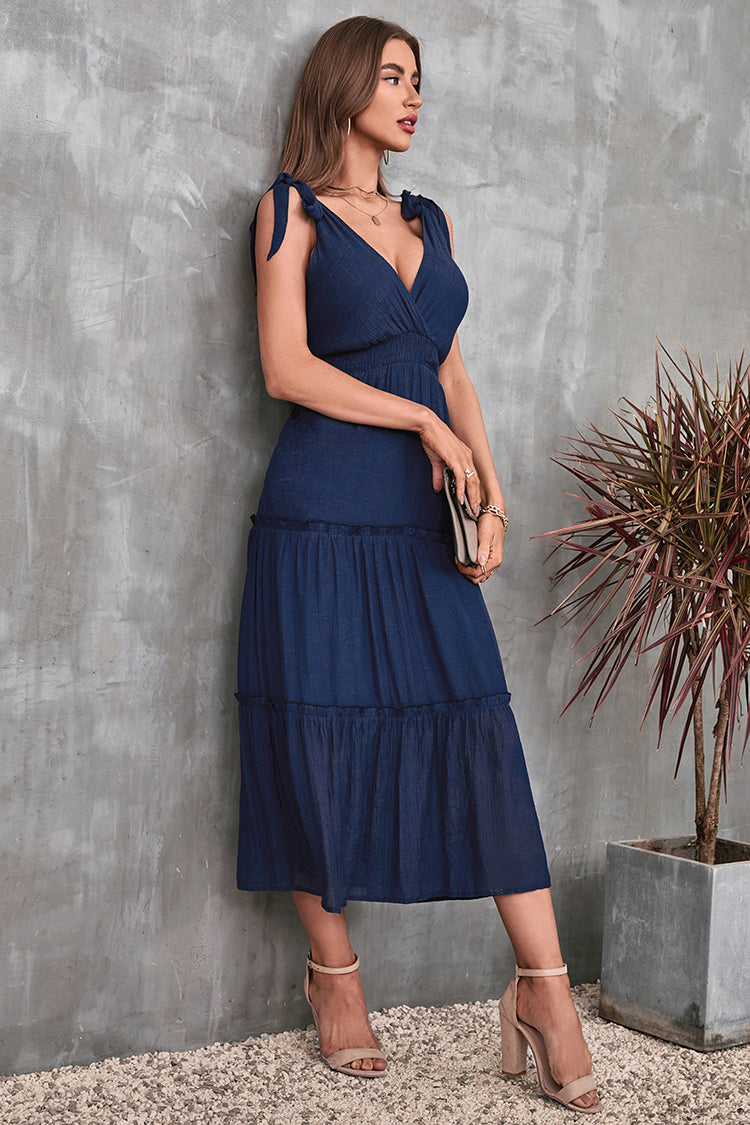 This Plunge Wide Straps Elastic Waist A-Shape Dress features wide straps, the plunge design makes you more sexy and charming and the comfortable fabric adds to your wearing experience.