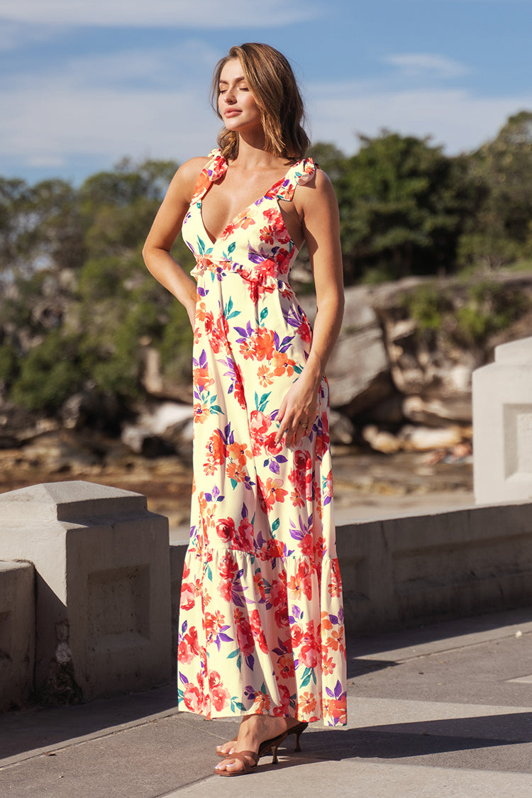 The shoulder straps can be adjusted by themselves, with bows tied at the top of the shoulders, and the front waist is decorated with ruffles. The gorgeous flower pattern is suitable for daily wear, vacation and beach scenes.