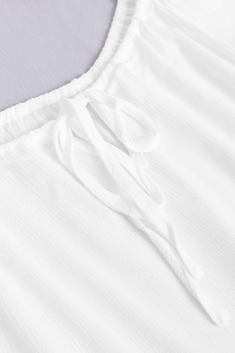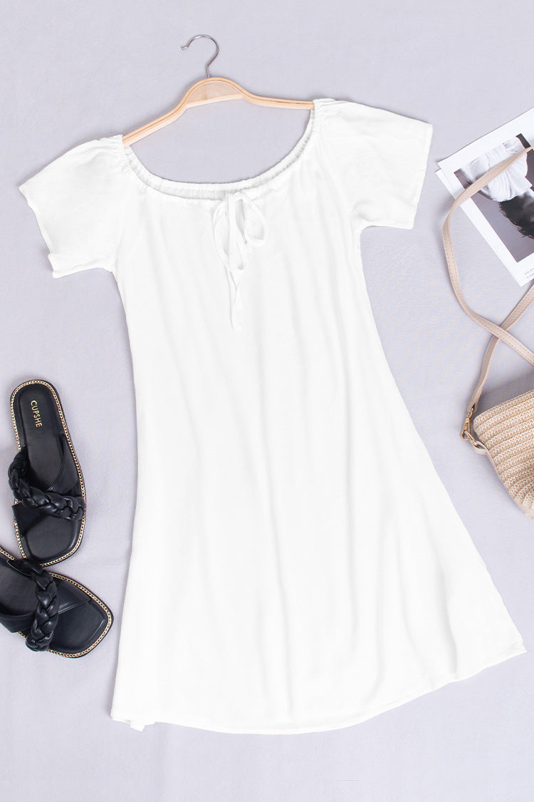 Look fabulous without sacrificing any comfort in our Paloma White Off Shoulder Drawstring Dress. The loose-fitting design gives maximum flexibility to move around, and you can pair it with any of your swimsuits.