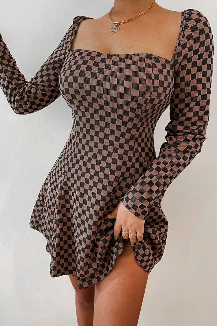 Elodie Square Neck Bubble Sleeve Tie A-Shape Dress