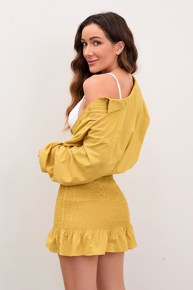 Ivory Coast Shirt Collar Smocking Short Bodycon Dress
