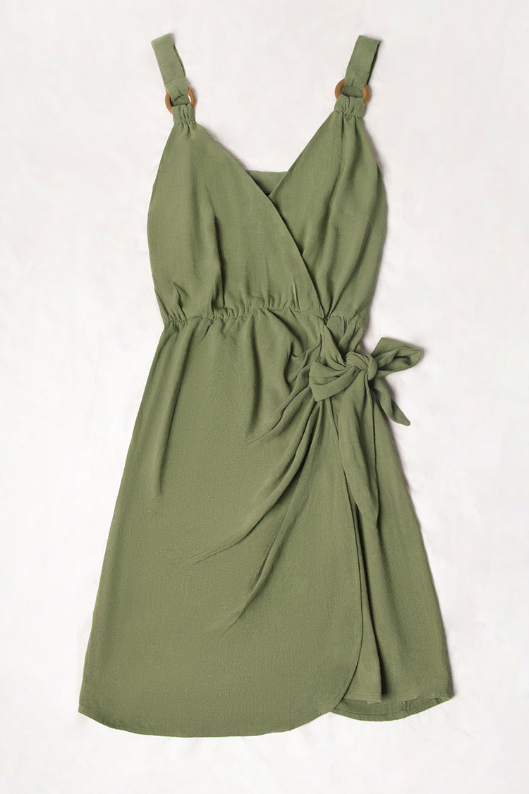 Jeanette Green O-ring Wrap Tie Waist Dress