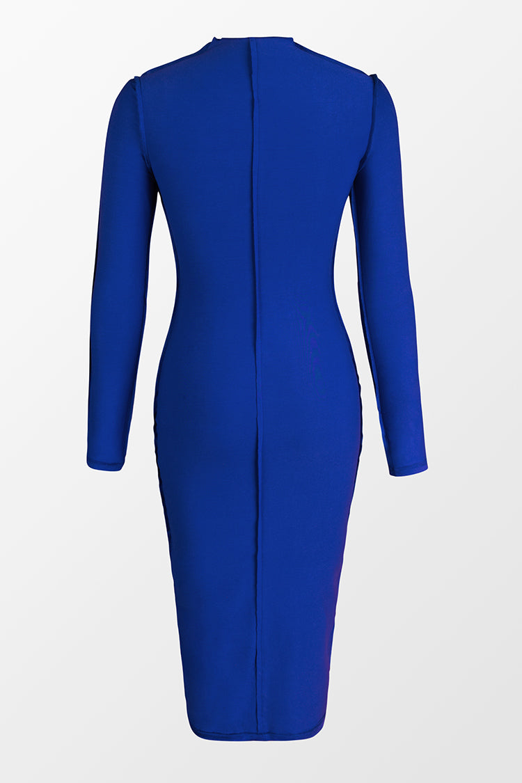 Ebony Blue Twist Ruched Long Sleeve Dress