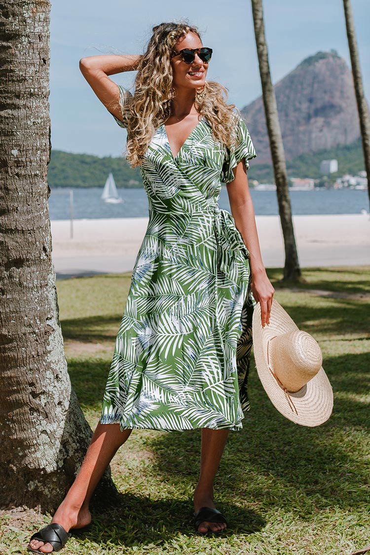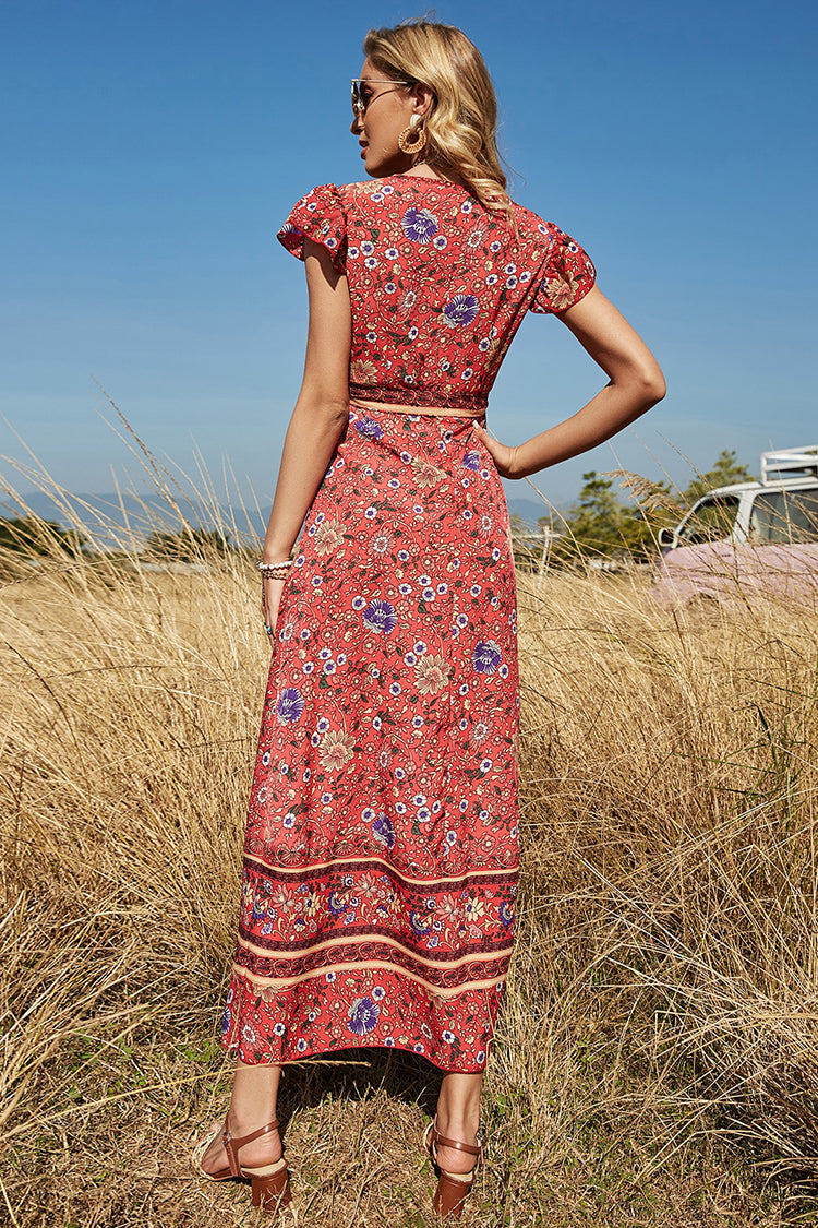 Arlette V-neck Short Sleeve Tie Waist Wrap Dress