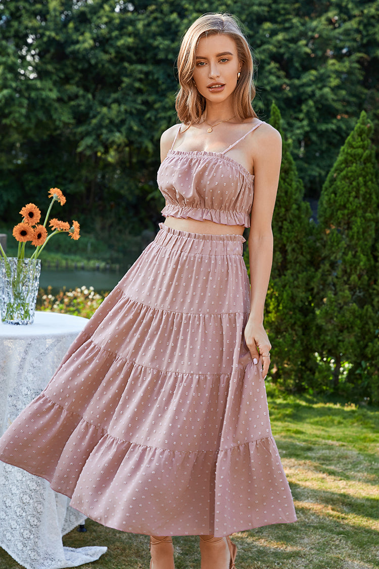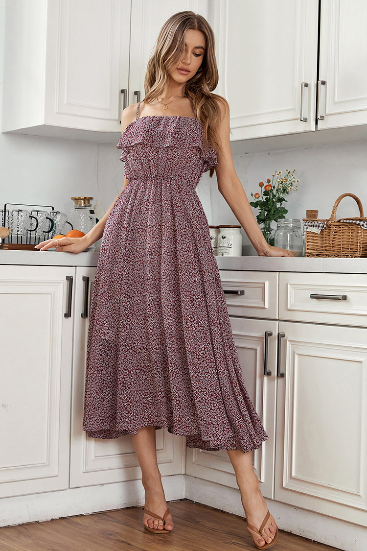 Alvina Thin Straps Elastic Waist Ruffle A-Shape Dress