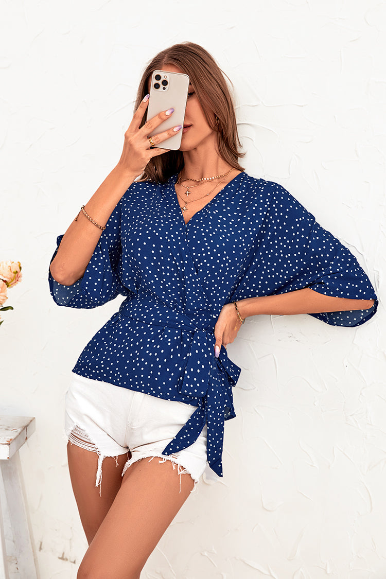 Kourtney Abstract V-neck Drawstring Cover-up Dress