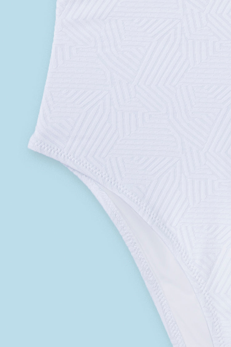 Feel the sun in our Alyson White Ruffle Double Crisscross Straps One Piece Swimsuit. Double crisscross straps details at the back give a flirty vibe to this swimsuit.