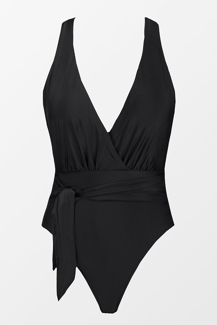 Our Brianne Tie Front Plunging One Piece Swimsuit is the ultra sexy bathing suit you've been looking for. Featuring a deep plunge neck and tie front with crisscross back detailing. The perfect one piece to soak up the sun in style.